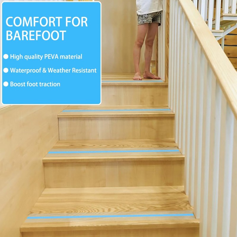 - SLIP RESISTANT SAFETY TREADS - Anti slip grip tape with glow in the dark is made of high quality PEVA material, non-toxic, waterproof & durable,and it can effectively increase the friction to prevents slipping and reduces the risk of accidents on slippery wood, marble and tile stairs to keep your family, kids and pets safe.