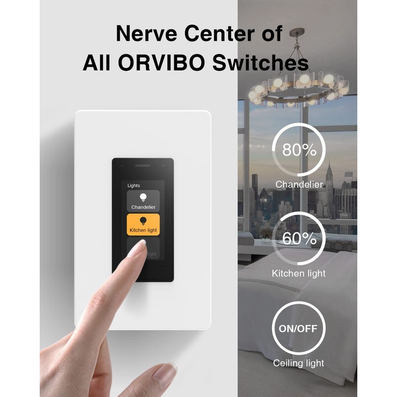 - Nerve Central for All Your LightsThe MixPad D1 smart dimmer can control all ORVIBO switches and personalize scenes for sleeping, leaving home, working, and turning on/off all lights. With the ability to create customized scenes, you can set different brightness levels for your chandelier, light strip, and floor lamp. Simply click the "Movie" scene and enjoy the perfect lighting for your viewing experience.