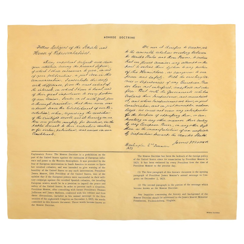 Our Amendments - Monroe Doctrine 1823, Antiqued Parchment Replica Document (12" x 13.5"), Ribbon-tied and in hard collectors tube