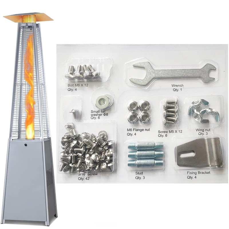 Outdoor pyramid patio heater replace the patio heater screw set, complete components, replace any fallen or loose screws, no longer need to go to the hardware store to find the appropriate individual screws.