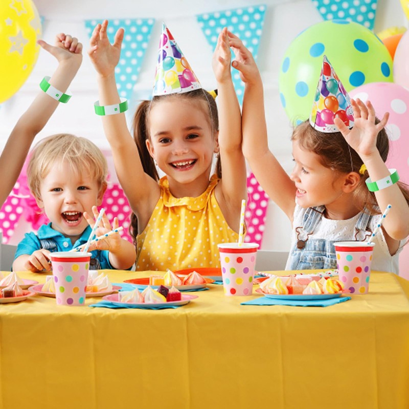 • Easy to use: each party bracelet has a piece of tape on one end. Simply place the band around your wrist, peel off the protective paper from the band and stick it to the other end to secure the bracelet.