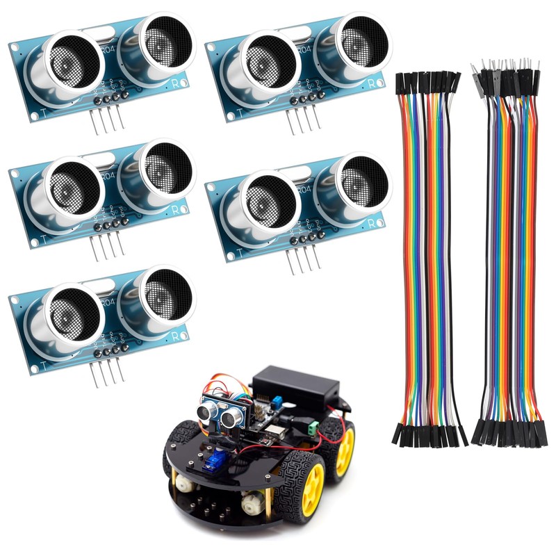 Discover the HC-SR04 ultrasonic sensors set of 5, ideal for precise distance measurements in a variety of electronics projects. Each sensor measures distances ranging from 0.79 inches to 197 inches with a fine resolution of 0.12 inches, making it ideal for applications in robotics, projects, obstacle detection, DIY automation and more.