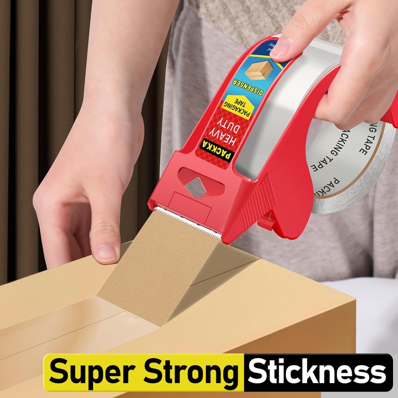 PACKKA Heavy Duty Packing Tape with Dispenser, Clear Shipping Tape Packaging Tape Dispensers for Shipping Mailing Moving Sealing Storage and Packing, 2 in. x 55 yd., 2 Tape Rolls with Dispensers | PACKKA