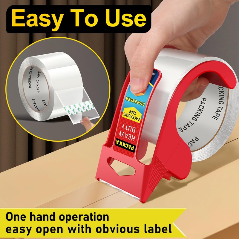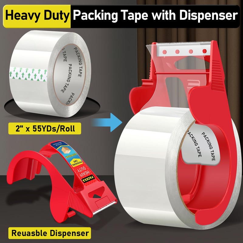 PACKKA Heavy Duty Packing Tape with Dispenser, Clear Shipping Tape Packaging ...