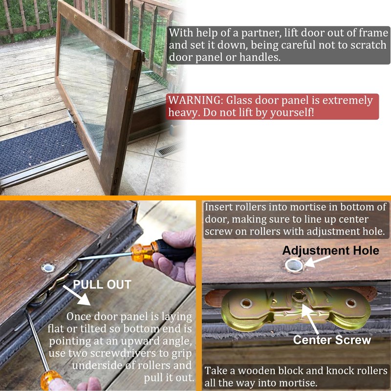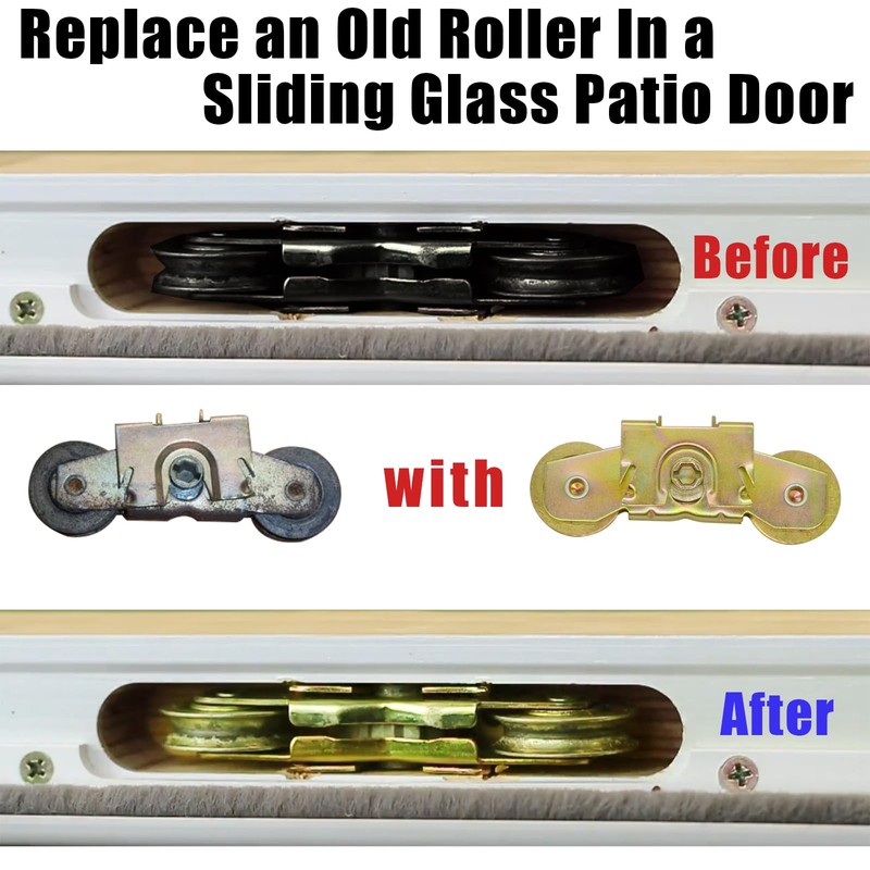 - [Replace In Pairs]: The typical patio sliding glass door uses two roller assemblies, one on each bottom corner of the sliding door. We recommend replacing both sliding door rollers at the same time to prevent extra wear-and-tear to one new roller, which will have to work twice as hard when paired with an old roller