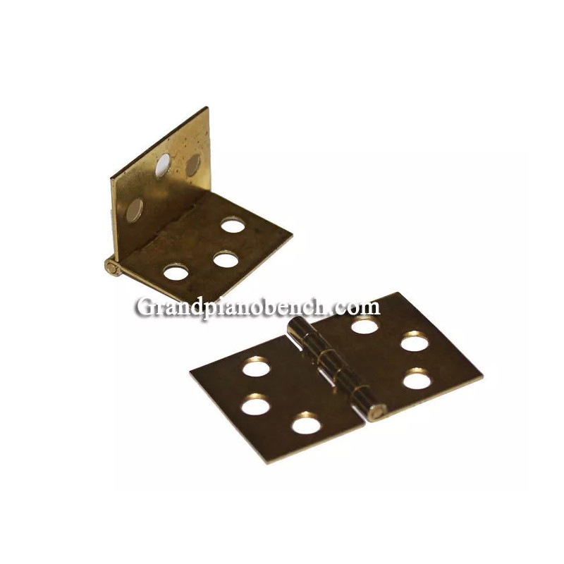 Set of two replacement piano bench hinges, which are brass plated. Length of hinge along the pin is 1-1/4", width of hinge when closed is 1-1/16". Attaches the lid of the bench to the frame, allowing you to open the lid.