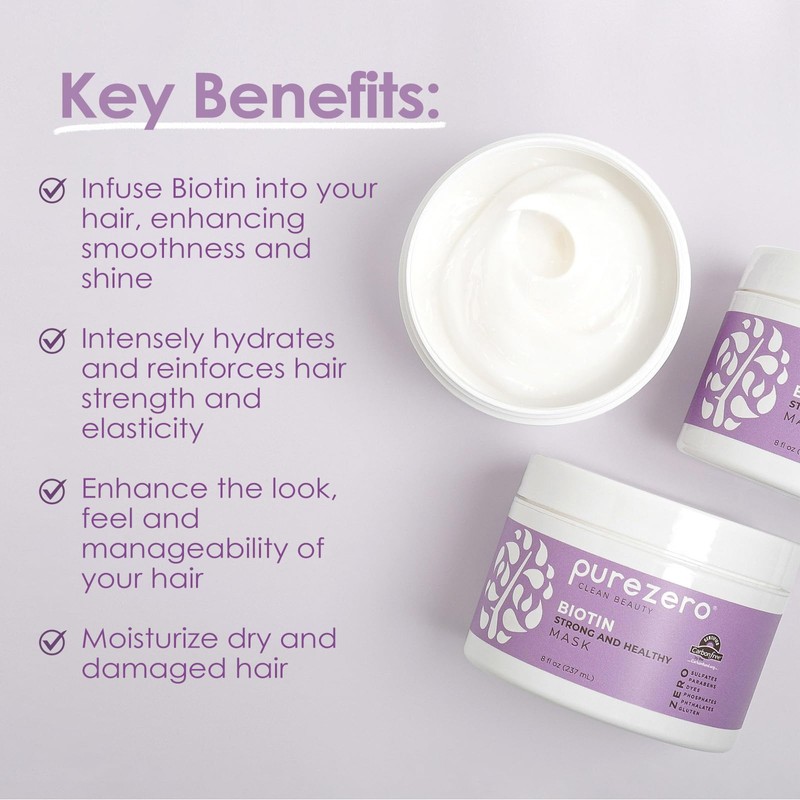 PureZero Biotin Strengthening Hair Mask 8 oz – Nourishing, Moisturizing, & Repairing for Stronger, Healthier Hair