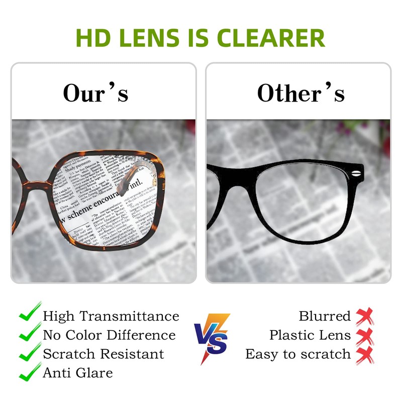 - 【Bigger and Clearer Field of View】This super-large computer reader is made of high-grade reading magnifying lenses, with higher precision, easy to read small characters, good light transmittance, less reflection, and scratch resistance. Extra-large frame ensures a larger and clearer field of view when worn without blurring and/or distortion