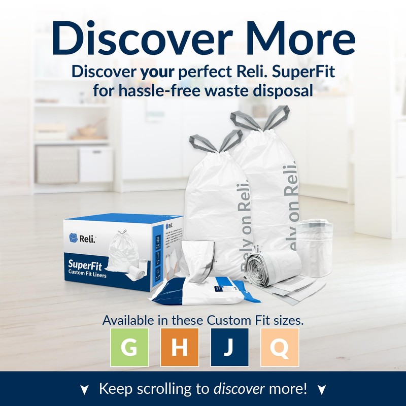 - Discover More: Scroll down to explore Reli. Custom Fit Trash Bags in many sizes!