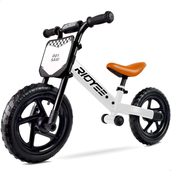RIDYEE Toddler Balance Bike Aged 2 to 5 Years, Balance Bike 3 Year Old with Adjustable Shock-Absorbing Seat, Bike for Toddlers 2-4 with Handlebar Pad, Cool Moto Style Designed, DIY Sticker, White
