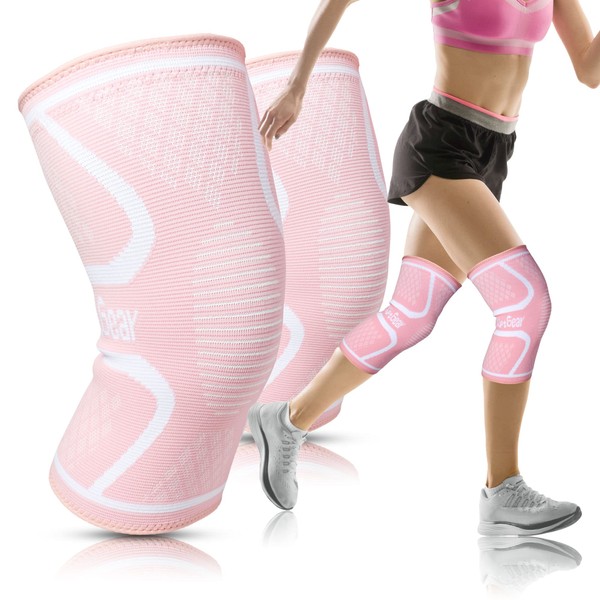 RiptGear Knee Compression Sleeve - 2 Pack - Braces for Knee Pain - Compression for Arthritis, Meniscus Tear, Running - Support for Women and Men - Sleeves Weightlifting (Large, Pink (2 Pack))