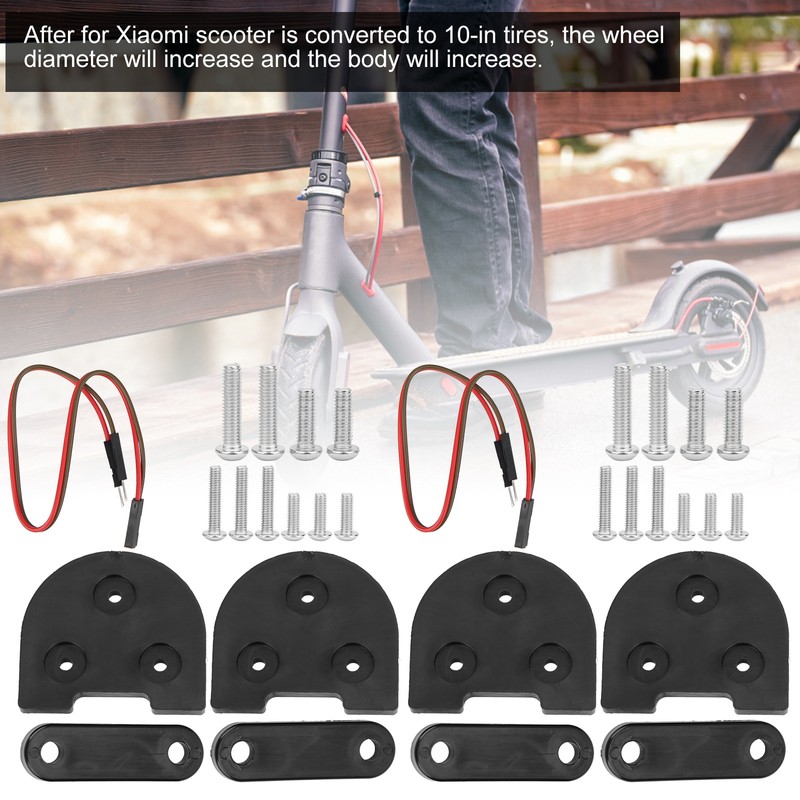 1、The scooter mudguard spacer is used to modify for Xiaomi M365 / M365PRO 10‑in tire. 2、After for Xiaomi scooter is converted to 10‑in tires, the wheel diameter will increase and the body will increase. 3、This accessory is easy to install and tighten, with good quality and long service life. 4、Add pads to reduce the shaking of the fenders, and the tail light wires must be connected. 5、Made of high‑quality materials, it has high reliability and can be used for a long time.