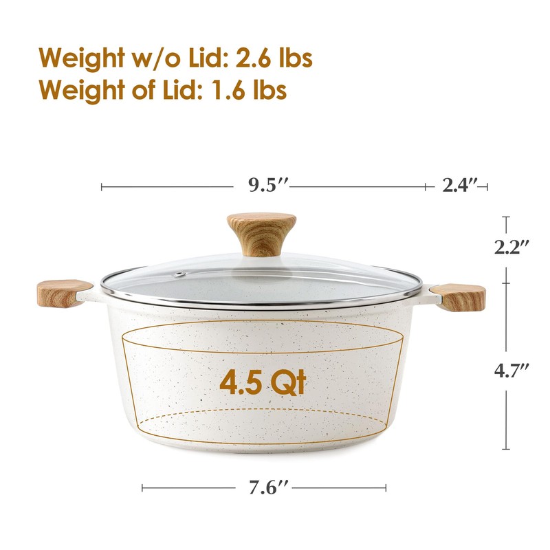- Lightweight Yet Sturdy - Weighs only 4.2 lbs, a fraction of traditional dutch ovens, designed for easy maneuvering from the kitchen to the table.