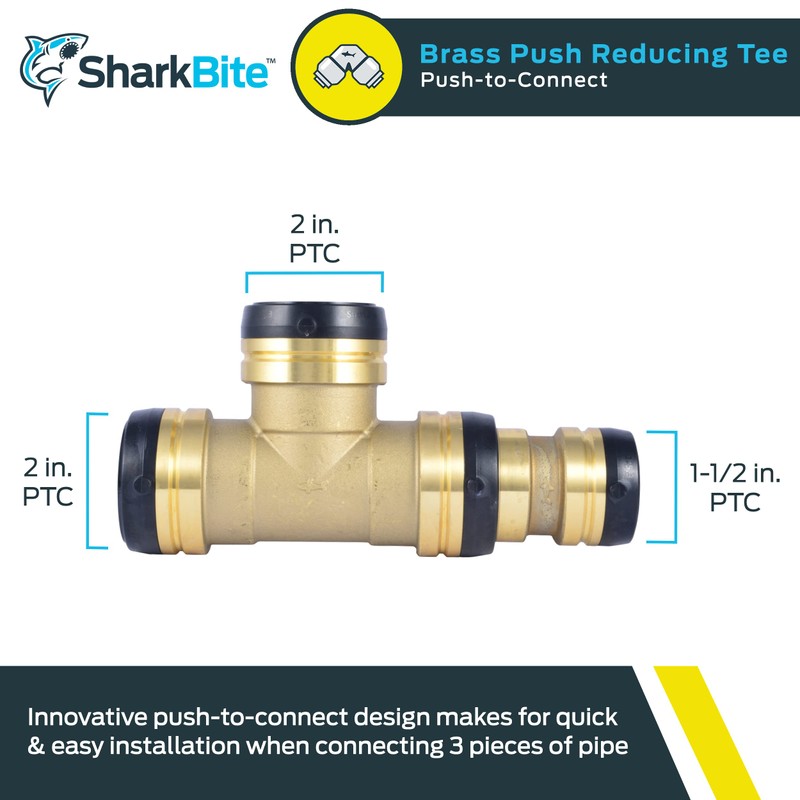 - EASY TO INSTALL: The innovative push-to-connect design of the SharkBite brass reducing tees allows for quick and easy installation; with no tools, crimping, glue or soldering required; can be installed in wet lines