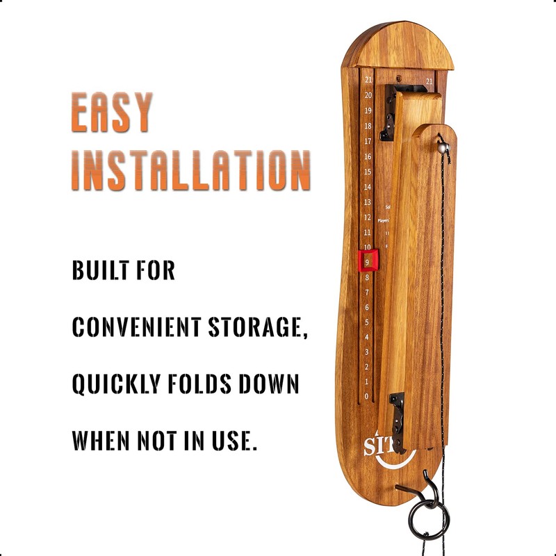 SITOO Ring Toss Game for Adults, Outdoors Games, Wall Mounted Hook and Ring Game with Foldable Arm (Wood)