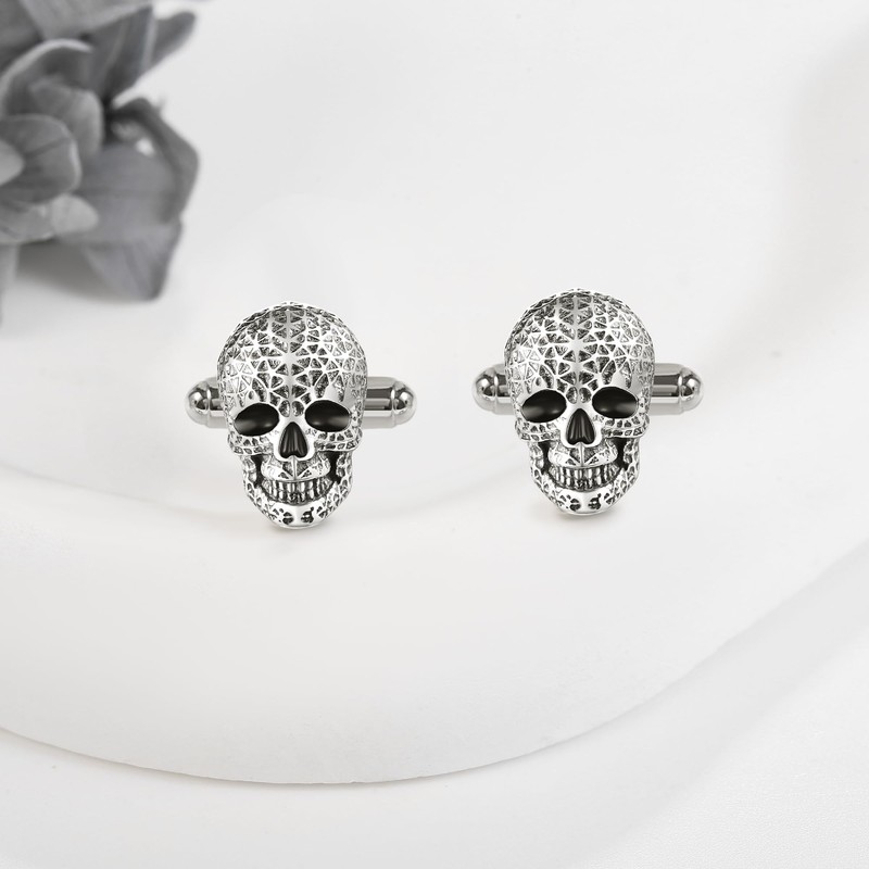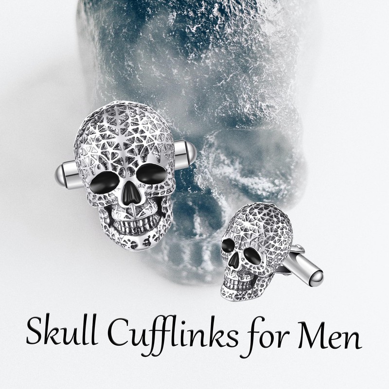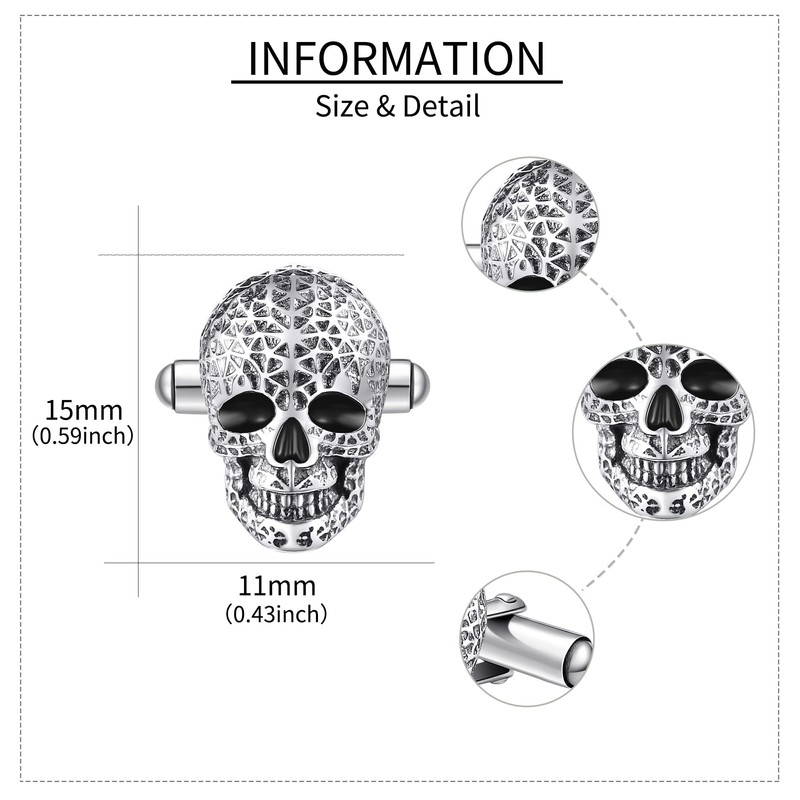 - đź–¤Package: 1 pair of Sterling Silver skull cufflinks for men, 1*Polishing Cloth, 1*Exquisite Box.