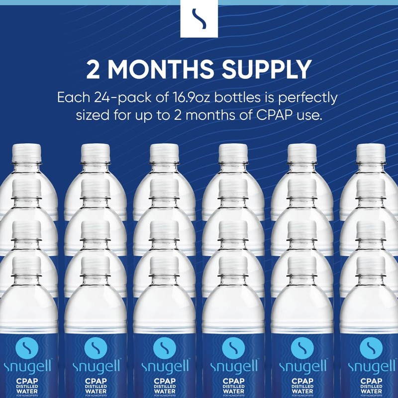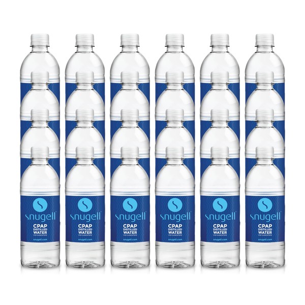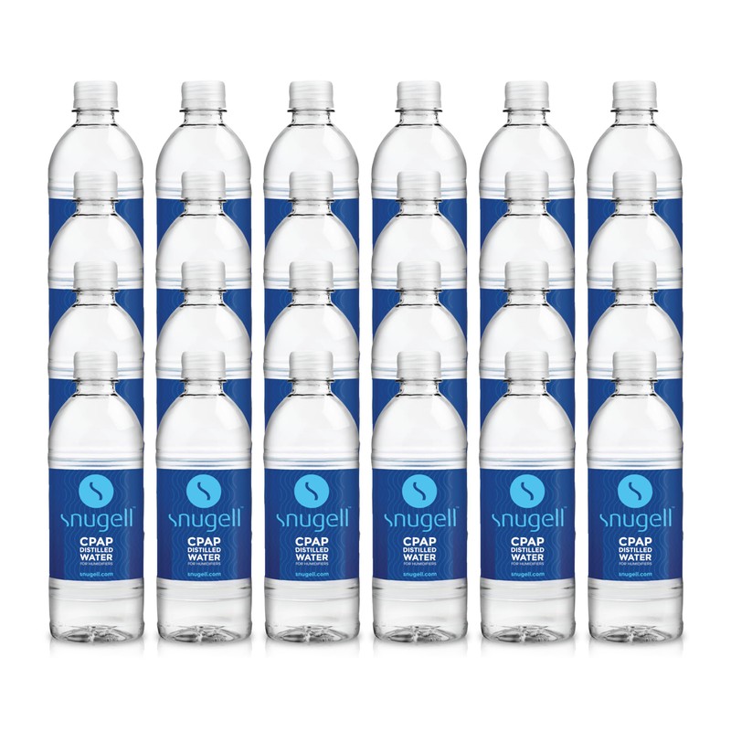 Snugell Distilled Water for CPAP Machines, Travel Size Bottles (24-Pack, 16.9 oz Each) – Up to 60 Days Supply – Clean, Multi-Use, Travel-Friendly, Made in USA