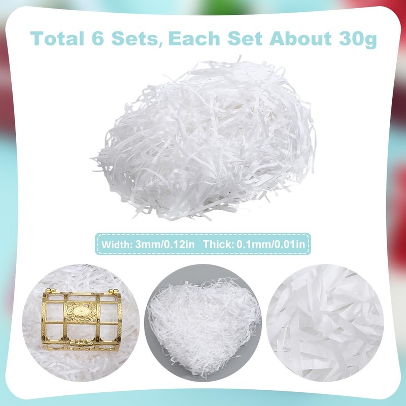 - Size and Content: Gift basket grass are available in 6 sets, 30g each set, 180g in total. Size: width: 3mm(0.12 inch), thick: 0.1mm(0.01 inch)