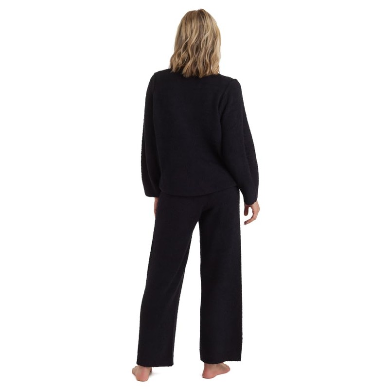 Softies Solid Marshmallow Reverse Seam Crew Neck Lounge Set for Women, 2 Piece Loungewear with Bracelet Sleeves, Made of Cloud Soft Fabric, Black, Small