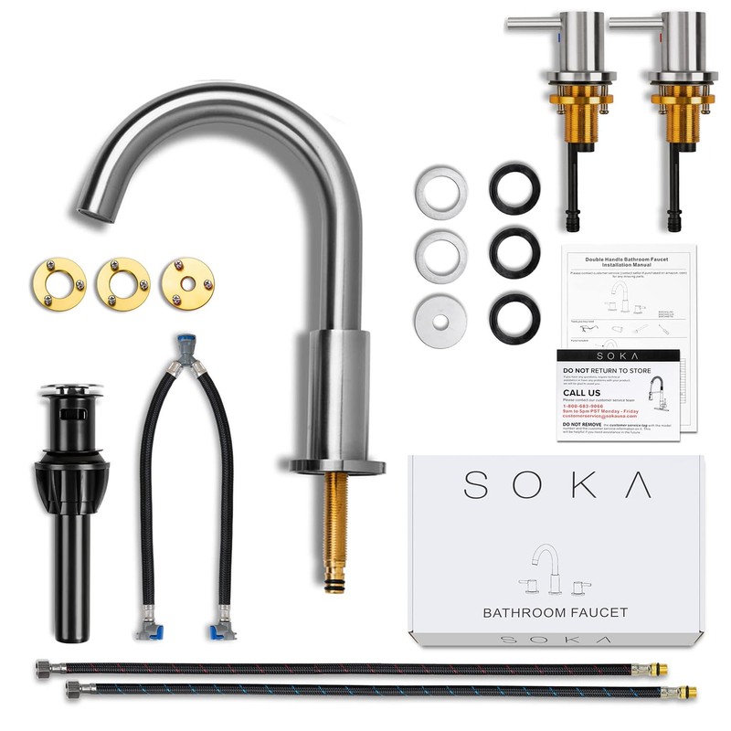 - Water Saving Design: With honeycomb aerator and pop-up drain, SOKA 3 hole widespread faucet provides a splash-free and well-aerated stream and saves 20% of water consumption. Equipped with the step-by-step instructions, you can install the bathroom sink faucets within several mins like the professional plumber.