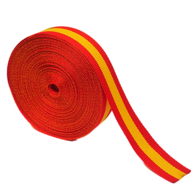 - This Spanish flag ribbon is perfect for decorating at patriotic events and parties as well as showing your love for Spain everywhere. Measuring 10 metres long and 2 cm wide, this ribbon is long and wide enough to cover large areas or cut into smaller pieces. Made of high quality materials, this tape is sturdy and durable, so it can be reused multiple times.