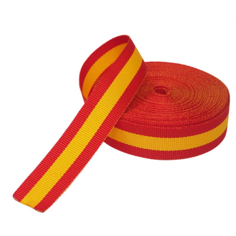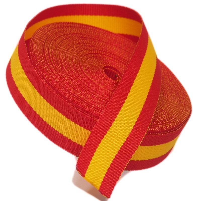 - This Spanish flag ribbon is perfect for decorating at patriotic events and parties as well as showing your love for Spain everywhere. Measuring 10 metres long and 2 cm wide, this ribbon is long and wide enough to cover large areas or cut into smaller pieces. Made of high quality materials, this tape is sturdy and durable, so it can be reused multiple times.