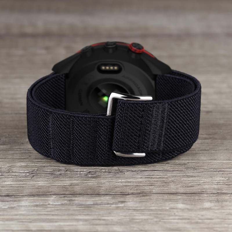 SUDENN Elastic Loop Band compatible with Garmin Watch 18mm 20mm 22mm 26mm Woven Nylon Stretchy G Hook and Loop Strap for Sport Fitness (Width 22mm / Length L, Black Black)