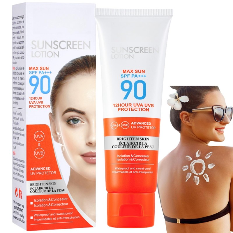 Sun Cream SPF 90,Face Sun Lotion Cream with SPF90,Suncream for High Sun Prote...