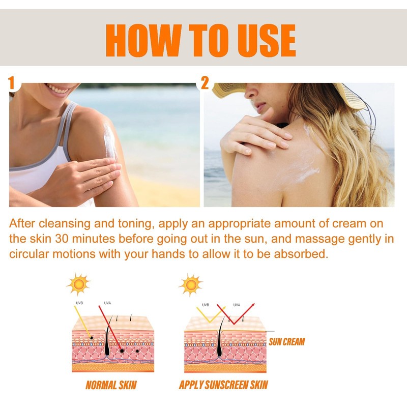 1. If the skin is uncomfortable during use, please stop using facial sunscreen lotion cream; please keep sun cream out of the baby and avoid eating.