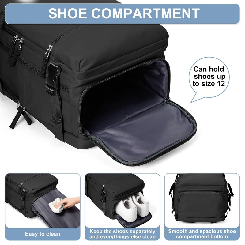 - INDEPENDENT SHOE COMPARTMENT AND WET POCKET: The shoe compartment can hold a pair of slippers or sneakers, allowing you to switch freely between different travel, business trip and outdoor sports status. The wet pocket is designed for storing wet towels, wet clothes, toiletries, etc., making your stay in the hotel or apartment more convenient.