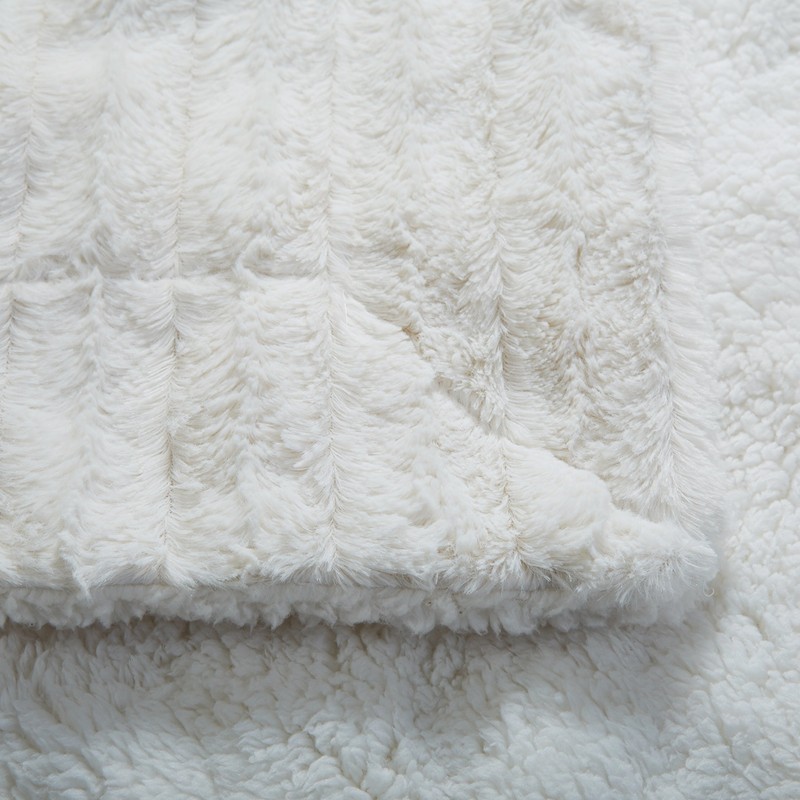Tache White Ivory Super Soft Warm Polar Faux Fur with Sherpa Throw Bed Blanket Queen Size 90 x 90