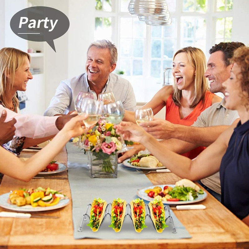 - 【Food-】Makes mean time full of fun for all ages.Food- sleek stainless steel taco racks.