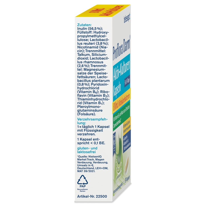 - Anwendung: 1 x täglich eine Kapsel mit Flüssigkeit einnehmen, die besondere Kapselhülle schützt vor Magensäure. Enthält außerdem Inulin zur Versorgung der Milchsäure-Bakterien