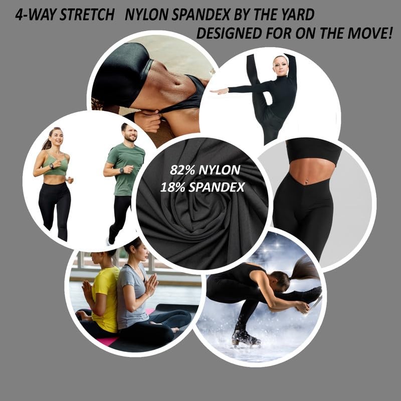 - ✅ QUICK DRYING: Nylon Spandex is the perfect fabric for activewear and swimwear on hot summer days because it quickly dries. It doesn't show sweat. When you're wearing a suit made from Nylon Spandex fabric, for instance, and go to the gym or swimming pool, water or sweat will evaporate in a short while.