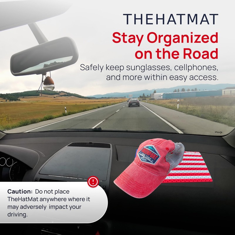 - On the Go Secure Style - The HatMat's extra-large non-slip dashboard car cowboy hat holder features anti-skid material, providing a secure hold for your hat while you drive. It's not just for your cowboy hat accessories—safely place sunglasses, cellphones, and wallets easily.