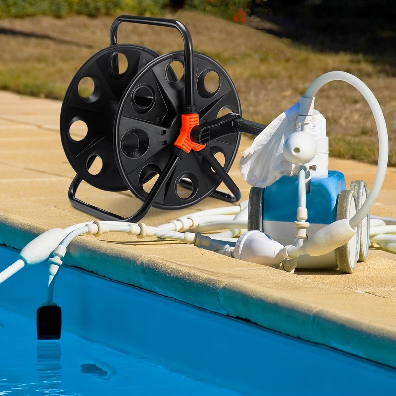 - Elegant and Practical: the vacuum hose storage of the swimming pool features a contrasting black and orange design, showcasing a classic style that blends seamlessly with your pool aesthetics; It can also effectively prevent entanglement and twisting of pool hoses, both elegant and practical