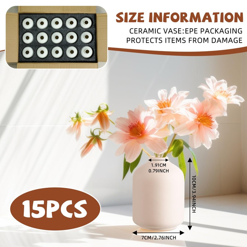 Tioncy 15 Set White Ceramic Bud Vases Bulk 3.9 Inch Boho Small Flower Vases White Ceramic Vases for Centerpieces for Dry Flowers Pampas Garss Home Wedding Table Decor (Stylish)