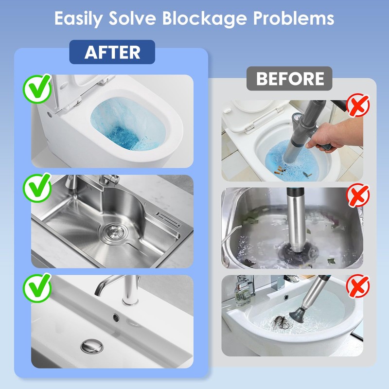 - 【1 Click and Clean, Save Money】Say goodbye to plumbing headaches! With just one touch, you can instantly solve clogged toilet problems at home; Toilet drain unblocker and strongest toilet unblocker is faster and more efficient than traditional tools like toilet snakes or augers; High pressure toilet unblocker and toilet pump unblocker; You don't have to wait for a plumber to arrive, effectively helping you save time and money