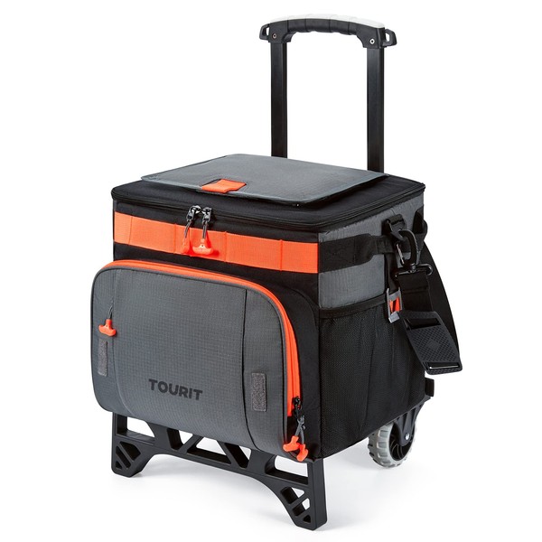 - TOURIT Wheeled Cooler: Wheeled cooler features an insulated front compartment and an easy-access lid for quick access to food and beverages; Keeps ice for up to three days and holds up to 50 cans