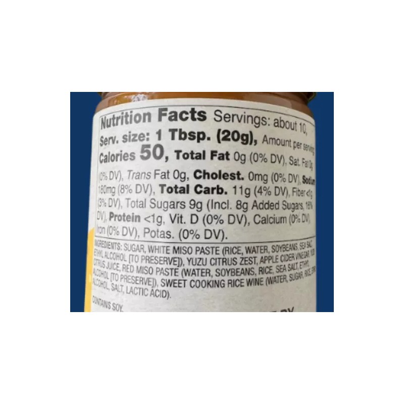 - SUGAR WHITE MISO PASTE (RICE, WATER, SOYBEANS, SEA SALT, ETHYL ALCOHOL [TO PRESERVE]) YUZU CITRUS ZEST APPLE CIDER VINEGAR YUZU CITRUS JUICE RED MISO PASTE (WATER, SOYBEANS, RICE, SEA SALT, ETHYL ALCOHOL [TO PRESERVE]) SWEET COOKING RICE WINE (WATER, SUGAR, RICE, ETHYL ALCOHOL, SALT, LACTIC ACID)