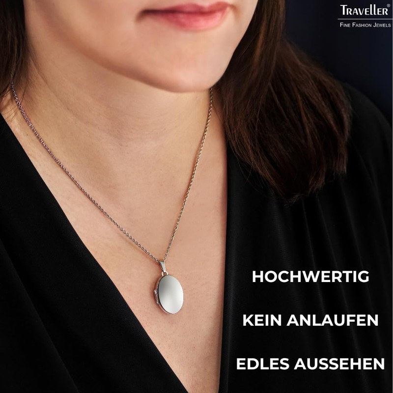 Traveller 571005 Locket with Chain – 925 Silver – Shiny – Oval – Made in Germany – 16 x 23 mm – 45 cm