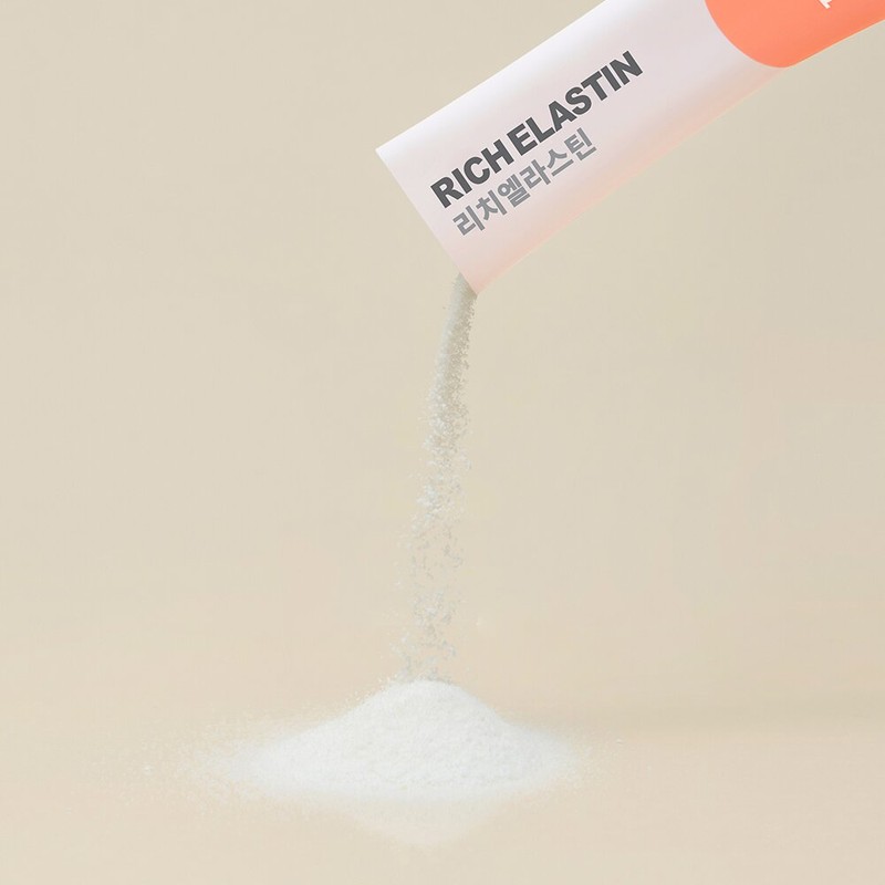 Recommended for those who want to balance the under and outer layers of skin at once, those who work long hours in a dry office, those who want to take elastin and collagen together, and those who are worried about crumpling makeup. Rich Elastin contains the maximum content of elastin hydrolysate and the 3 major components of the skin dermis in one pack, so consuming 1 pack per day is enough. This product is a powder-type that can be easily consumed without water. This is a grapefruit flavor.