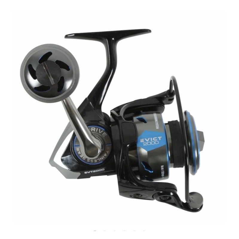 Evict Spinning Reels are compact power plant and sized for attacking the toughest game fish swimming your waters. Tsunami’s S-Drive Stainless Steel Gear System delivers smooth and extremely durable cranking power. 7 sealed ball bearings plus anti reverse clutch prevent salt, sand, and other debris from fouling while also maintaining superior gear alignment and smooth operation. Evict reels are built with CF3 Carbon Drag Systems that applies smooth, even pressure across a wide curve. All Evict reels come standard with an aluminum power knob and the 2000, 3000, and 4000 models have an EVA paddle knob included for light tackle finesse fishing.