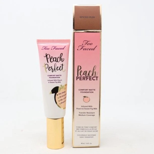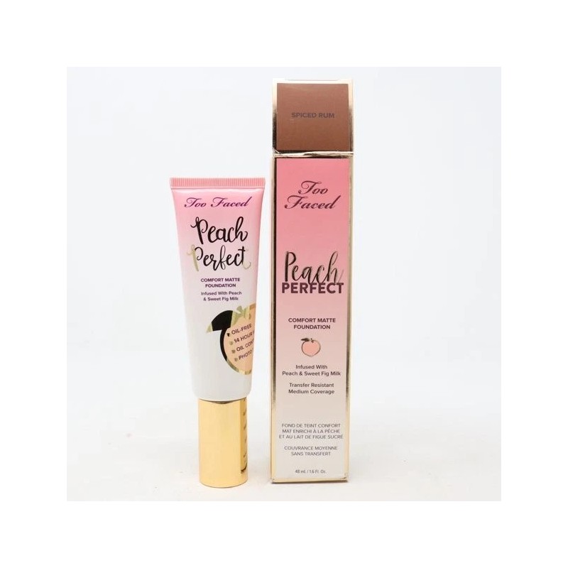 Two Faced Too Faced Peach Perfect Comfort Matte Liquid Foundation Spiced Rum ...