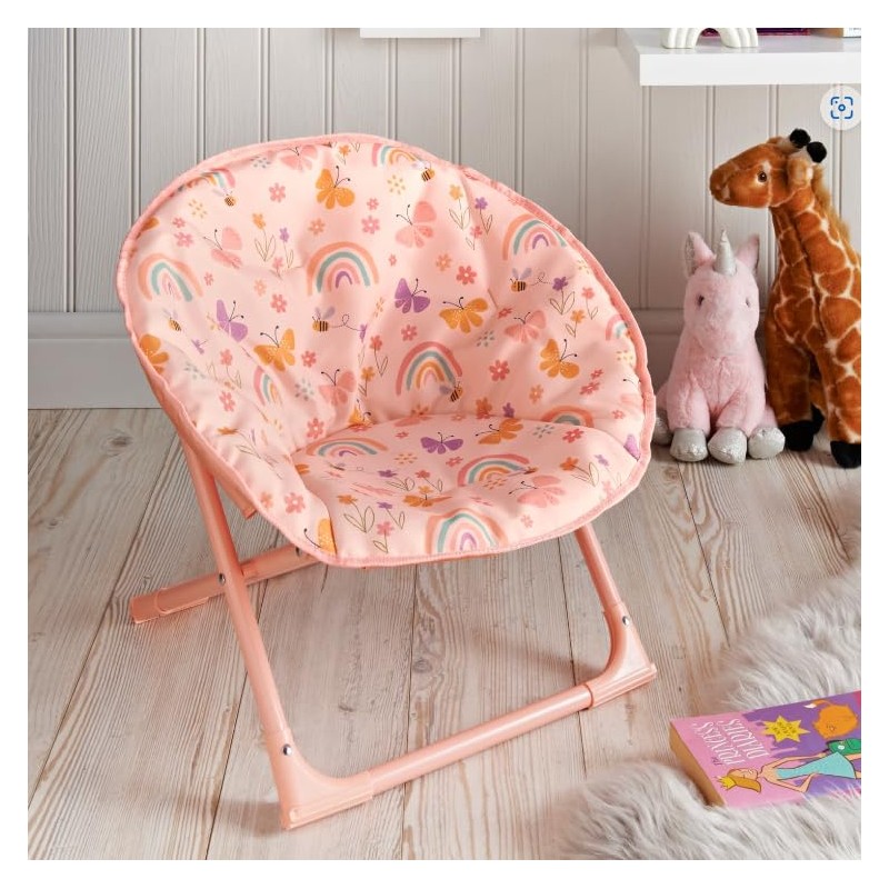 - Charming Design: Add a touch of whimsy to your child's room or play space with the Kids Home Rainbow Moon Chair featuring playful rainbow illustrations.