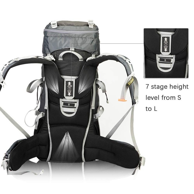 - 🌄LARGE CAPACITY: The backpack has a capacity of 60L volume, combining with a main sleeping pad compartment(50L) and a top lid pocket(10L). Great for 3-5 day trips. The main compartment is divided into two parts, the upper part for a sleeping pad or other hiking equipment and the lower part for your clothing or shoes. There are also some zippered pockets and mesh bottle pockets for your small items.