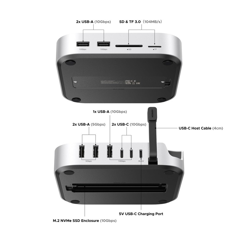UGREEN Mac mini M4 Dock & Stand with NVMe SSD Enclosure, 3 USB A 10Gbps, USB C Data Port, SD Card Reader for Mac mini M4/ M4 Pro