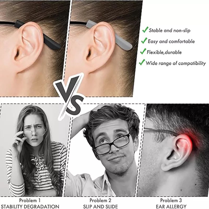 1-3Pairs Silicone Glasses Ear Cushion, Eye Glasses Ear Grippers Anti Slip Glasse