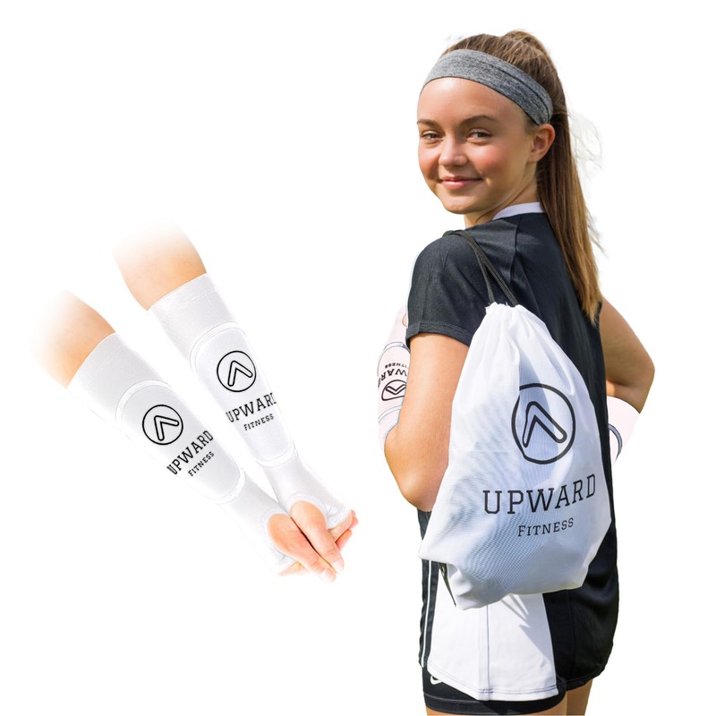 - Package Deal - Our volleyball arm sleeves with padding come with 2 additional items: a stylish athletic headband & convenient drawstring bag. Great for taking your volleyball training equipment on-the-go!