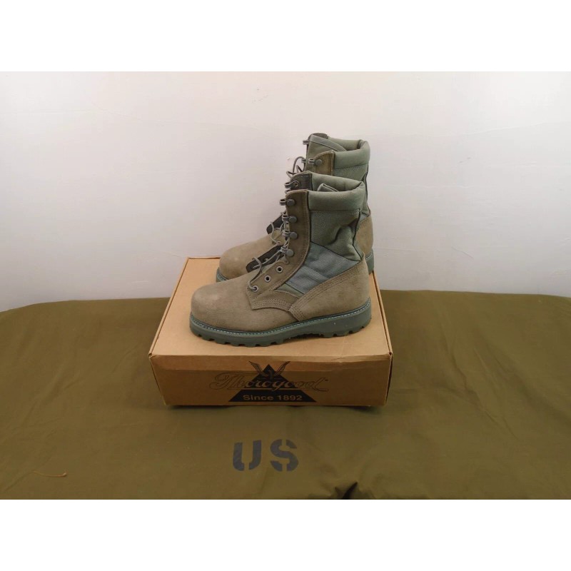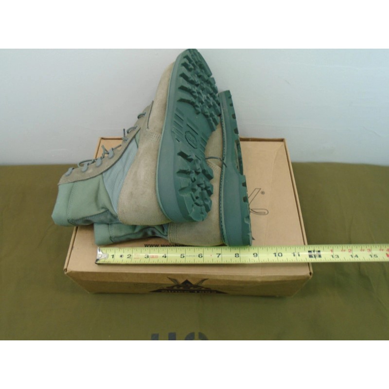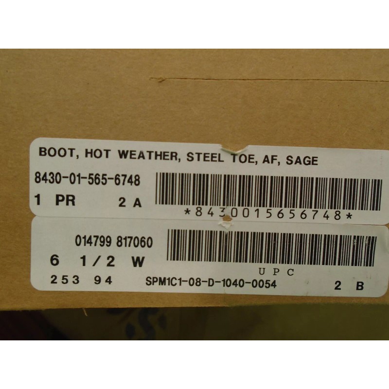 These are genuine U.S. Air Force, Hot Weather, Steel Toe, Combat Boots. Size 6 1/2 Wide. These Sage Green, Combat boots are in New Condition. Speed lacing, Air Vents, Vibram Sole. Hot Weather, lightweight uppers. Made in the USA. Boots, Hot Weather, Steel Toe, AF Sage Size: USA 6 1/2 Wide Condition: New Inventory # 55-A